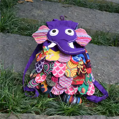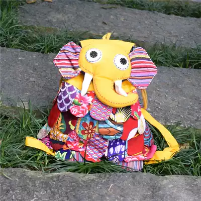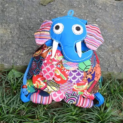 National style fabric colorful large elephant backpack children's schoolbag leisure simple all shoulder backpack