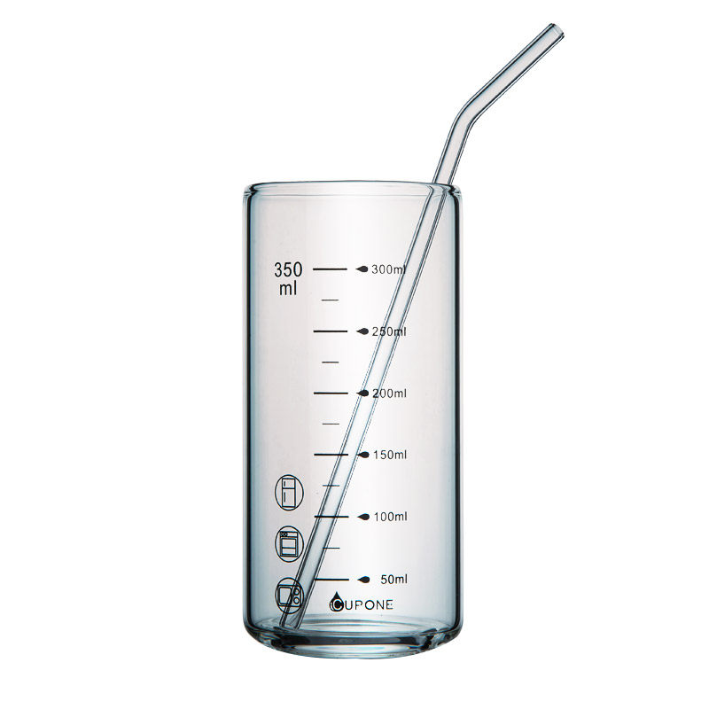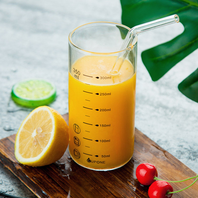 Transparent colorless 350ml glass lid glass straw glass lid stirring spoon single cup pink cover black cover