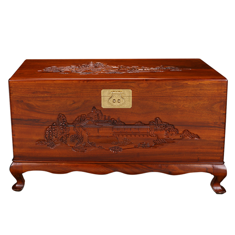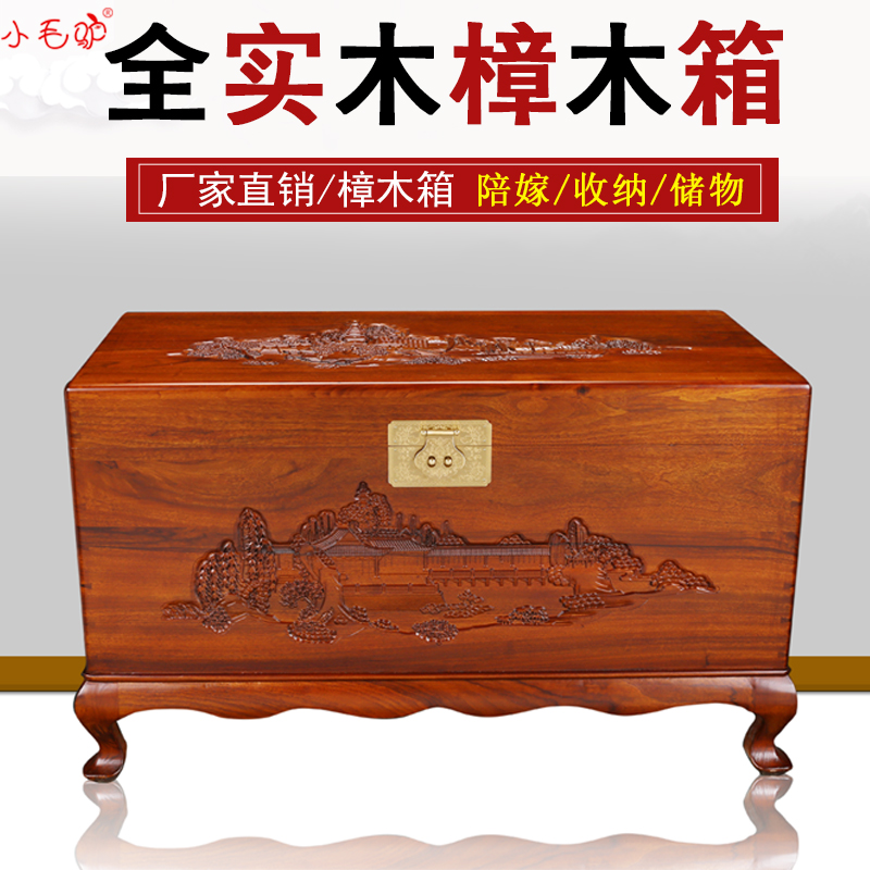 Chinese solid wood antique camphor wood storage box Clothes box Antique Chinese calligraphy and painting carving dowry wedding box