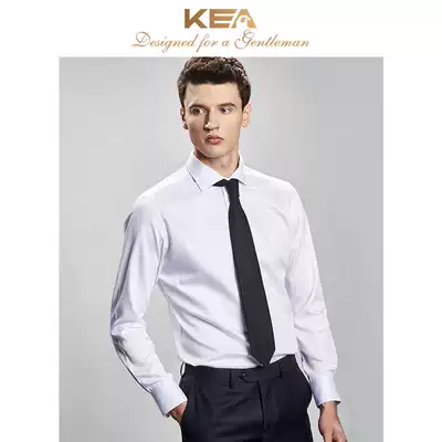KEA men White mercerized cotton long sleeve shirt slim solid color Windsor collar business dress no ironing shirt men
