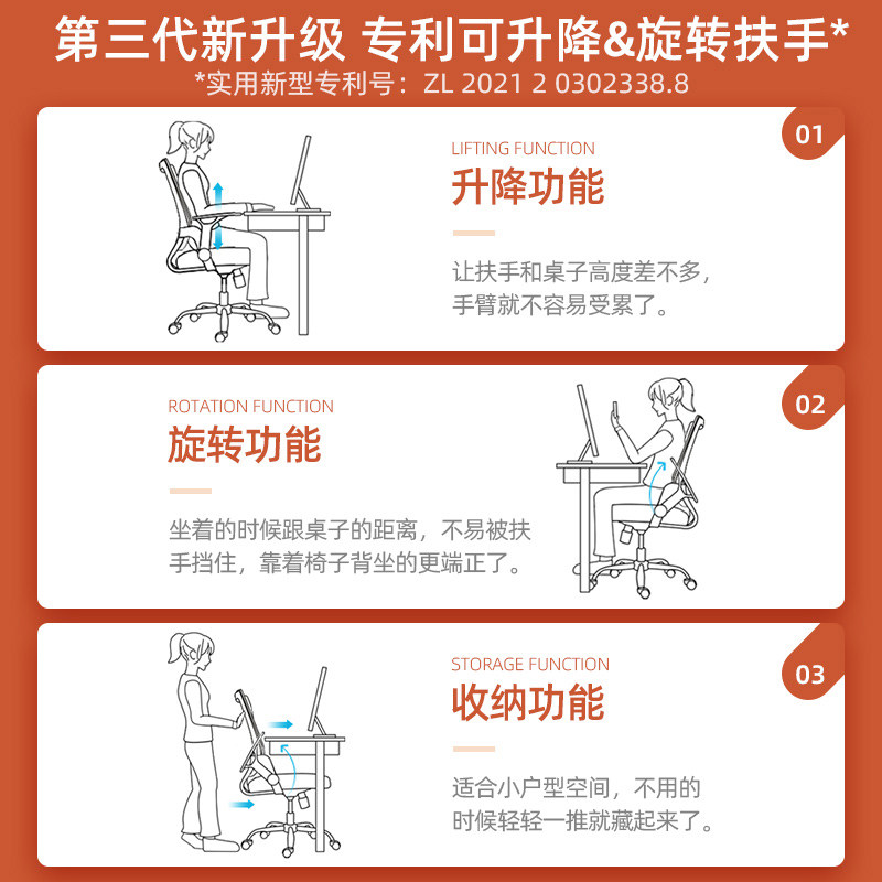 Rotating lifting and lifting armrests