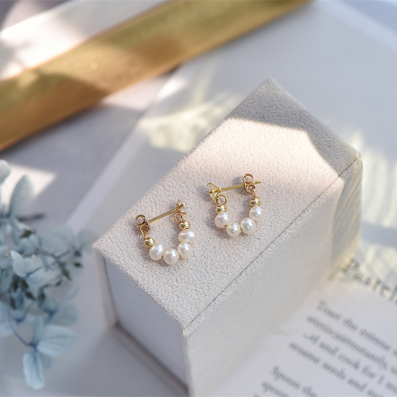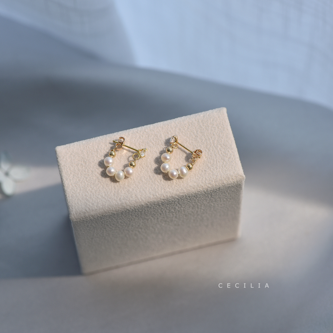 CECILIA original simple and exquisite Port wind girl pearl sterling silver diamond ear pins front and rear personality earring ear clip
