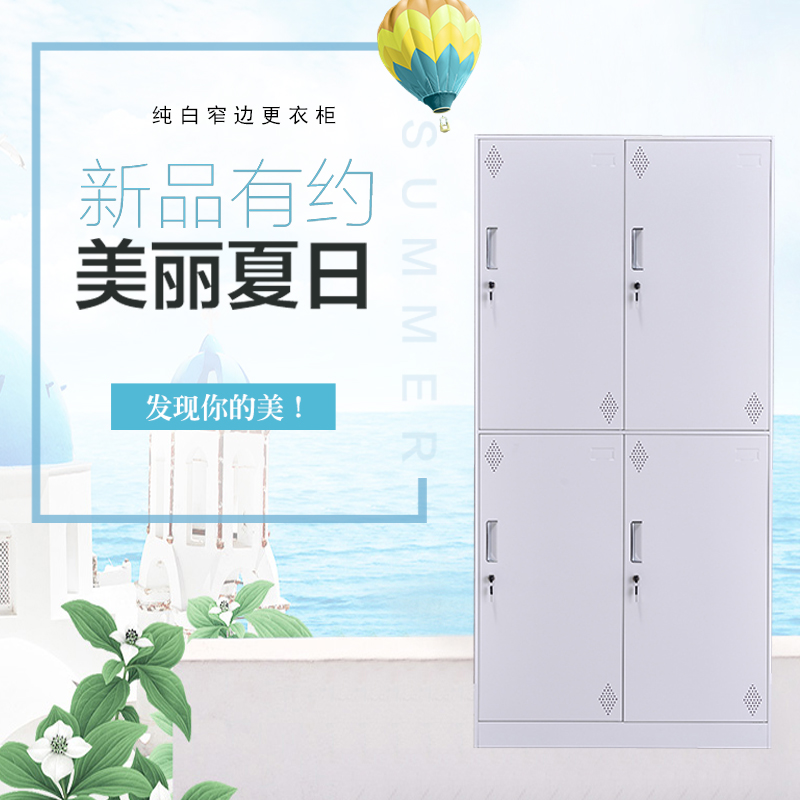 Steel four-door disassembly narrow side pure white locker Multi-door cabinet Employee storage cabinet locker Bath change wardrobe