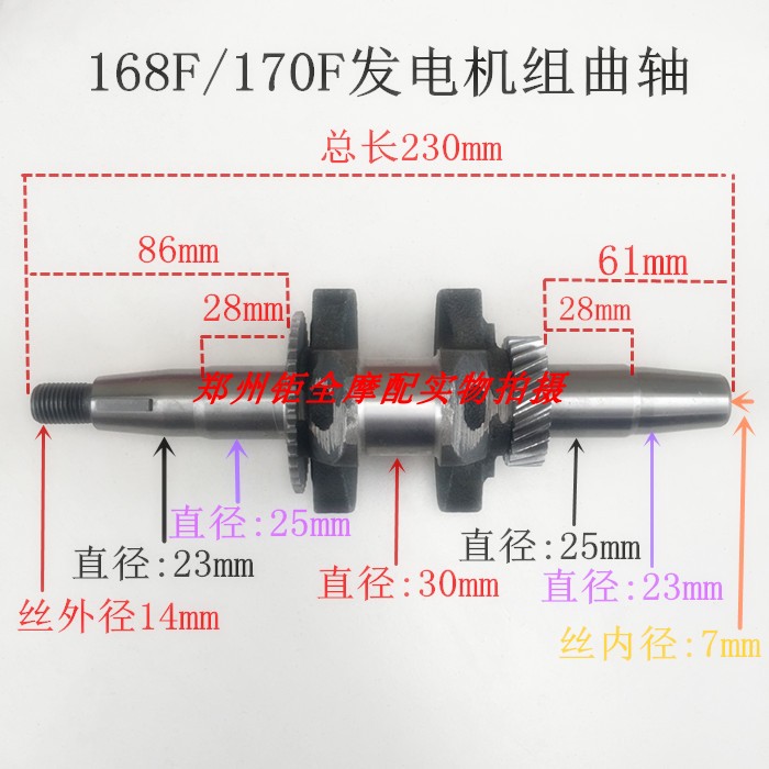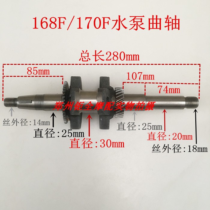 168F 170F generator crankshaft (slender shaft 19 shafts 168F 170F generator crankshaft (short shaft 20 shafts 168F 170F water pump crankshaft (outer wire 18 shafts)