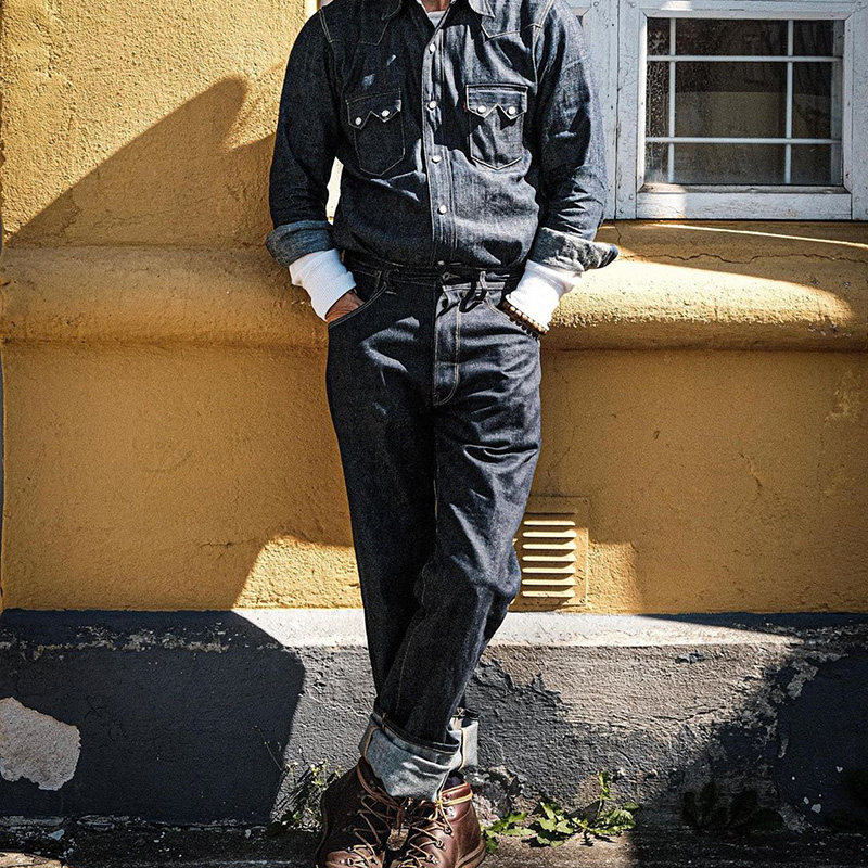 NON STOCK BARE EAR RAW 15oz HEAVY POUND STRAIGHT Jeans Long Pants Click to Grow Bull Tannin Pants Man