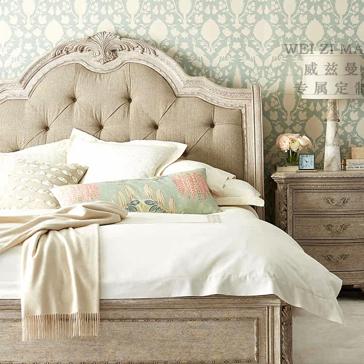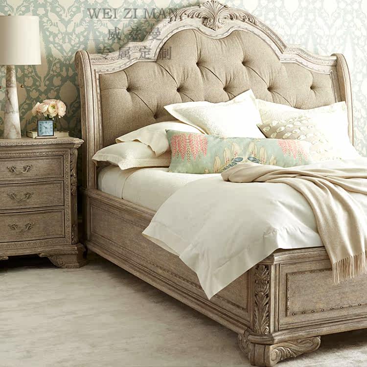 American Oak old vintage 1 8 m double carved bed French master bed European bedroom solid wood princess bed