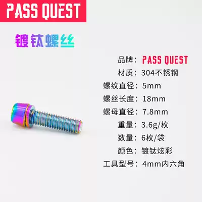 Colorful titanium-plated screws 4 colorful titanium-plated screws a pack of 6 gold-plated titanium-plated screws 4 gold-plated titanium-plated screws a pack of 6 blue titanium-plated screws 4 blue titanium-plated screws