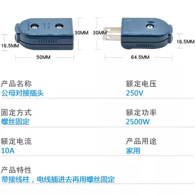 All copper national standard American two-eye power plug socket rotatable industrial security two-hole plug can be wired