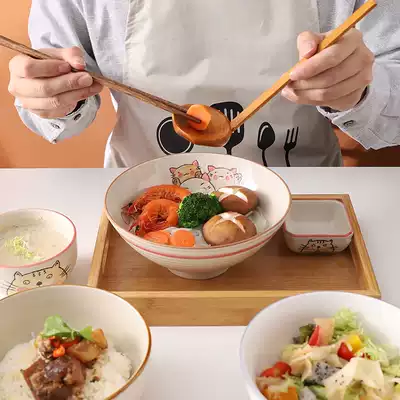 Beige pink wine red fluorescent green gold emerald green Red Rose Red White White White Gold 8 inch noodle bowl lucky cat noodle bowl send chopsticks 8 inch noodle bowl red Big Head fish send chopsticks 8 inch noodle bowl blue Pisces