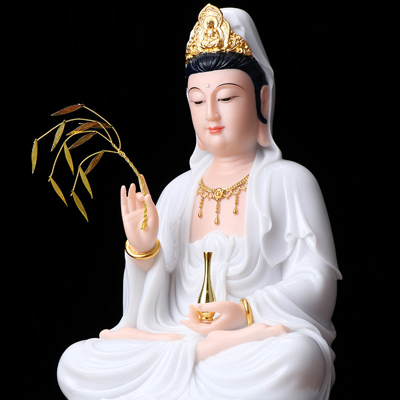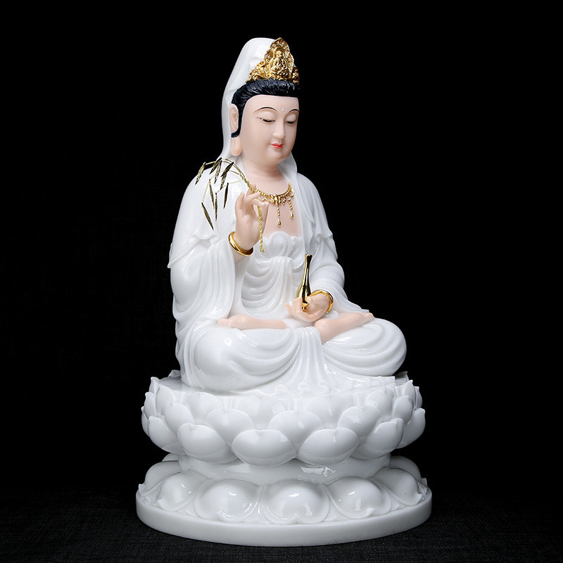 Yuantong Buddha with stone carving Han white jade Guanyin Buddha statue home offering white guanyin bodhisattva statue table top for Buddha ornaments