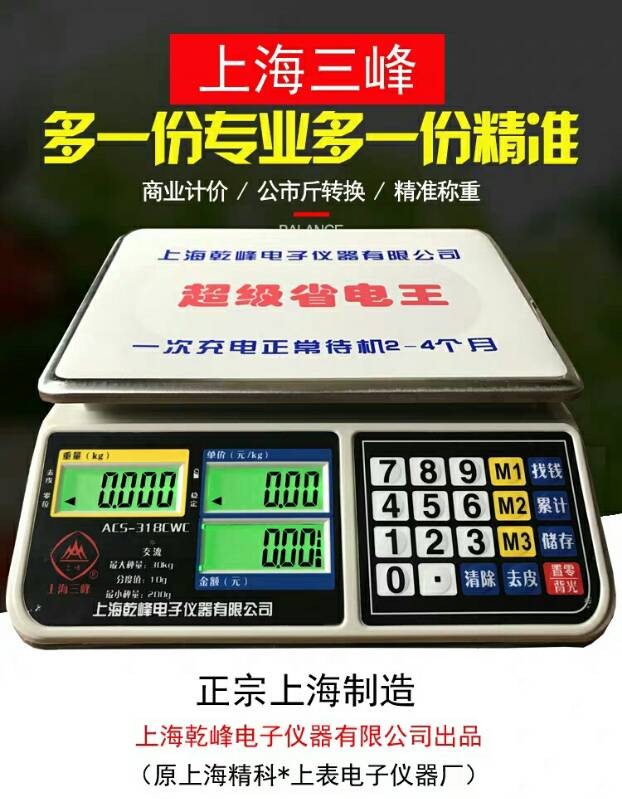 Shanghai Sanfeng Red Word 30kg Pingpan denominated Libra Shanghai Three peaks black character backlight 30kg flat disc denominated scale