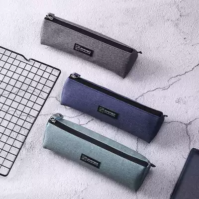 Del 66782 stationery pen bag simple men and women stationery bag stationery box primary school pencil box storage three pocket PU imitation linen large capacity Korean multifunctional zipper bag high school students