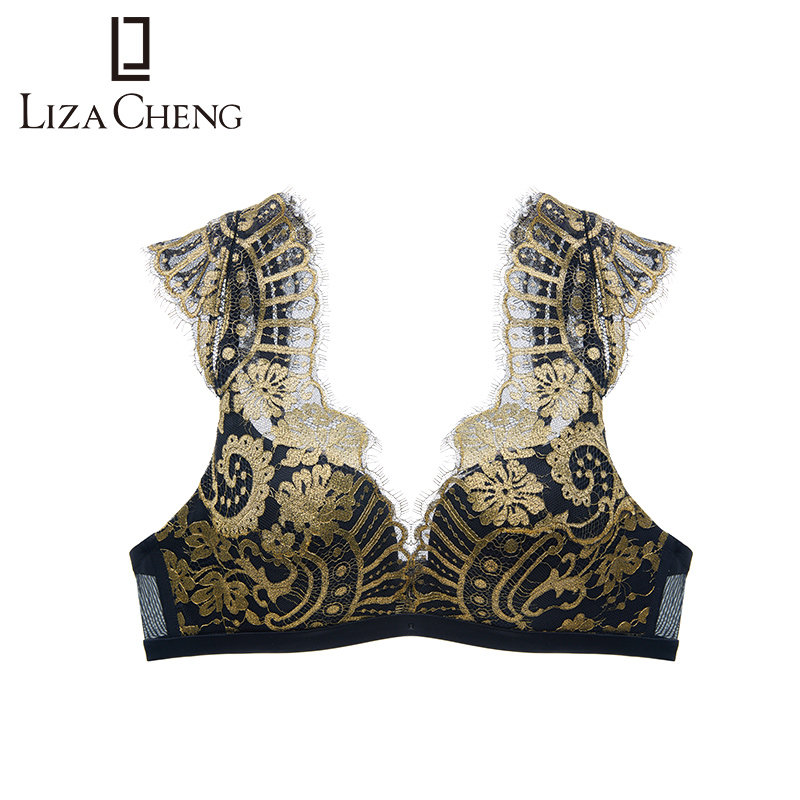 Liza Cheng Unrimmed Bra Embroidered Lace Sexy Medium Thick Cup Collected Underwear Mold Cup Styled LB0950