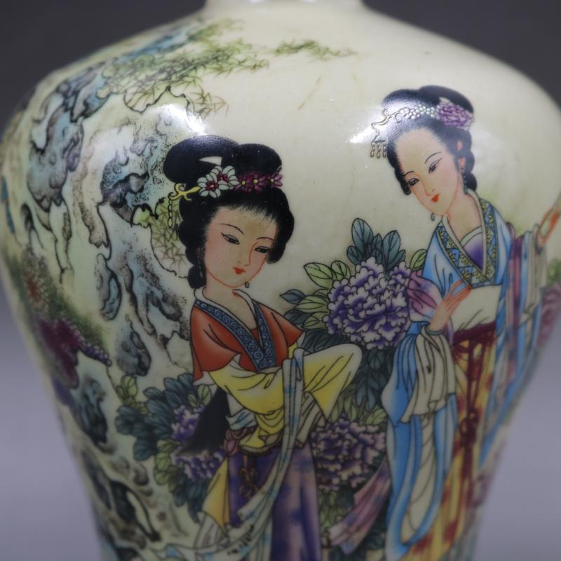 Great Qing Tongzhi Powder Color Figure Bodymaid Tumei Bottle Imitation Antique Porcelain Antique Ancient Play Book House Swing Piece Folk Porcelain