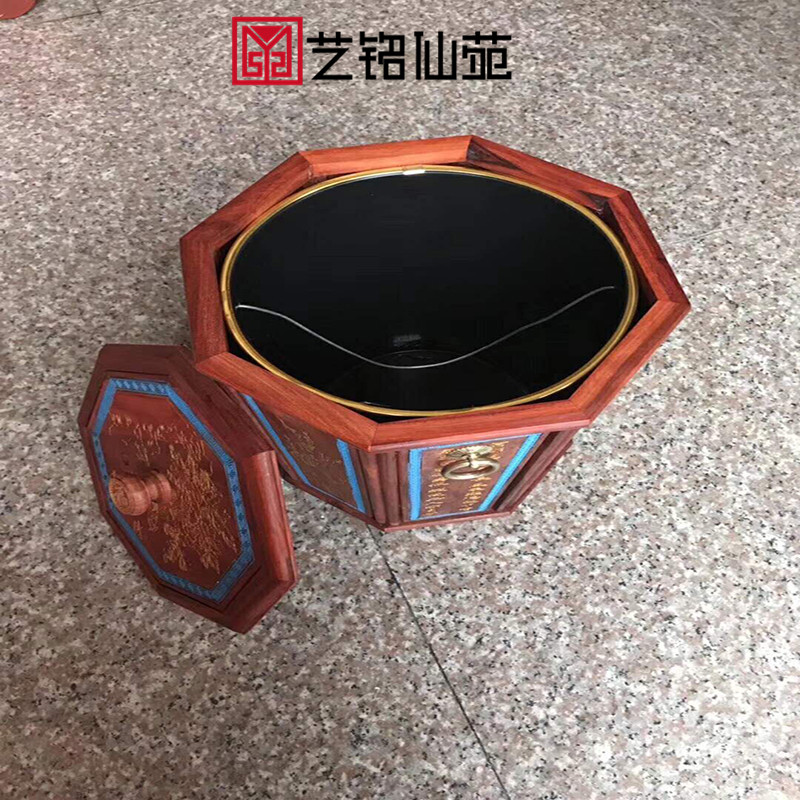 Blood Sandalwood Rubbish Bin Red Wood Tea Bucket With Lid Sanitary Silo Real Wood Carving Creative Bucket Home Matching Furnishing Sanitary Pail