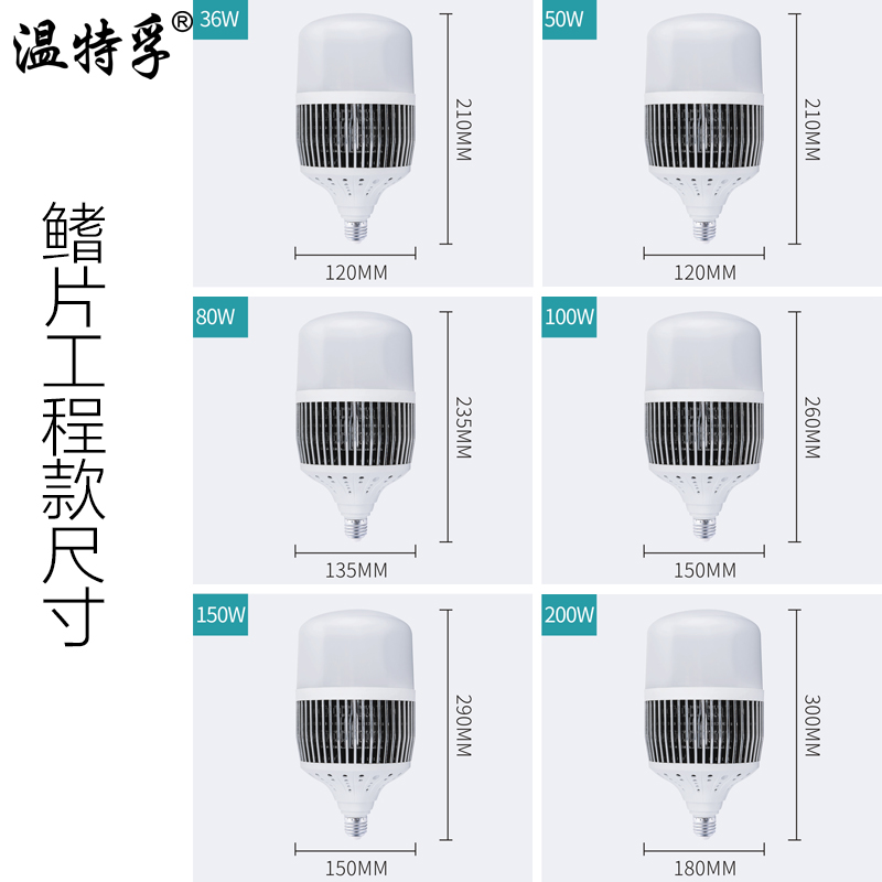 Winterfu led high-power bulb ultra-bright E27 screw mouth bulb Factory workshop plant energy-saving lighting Home