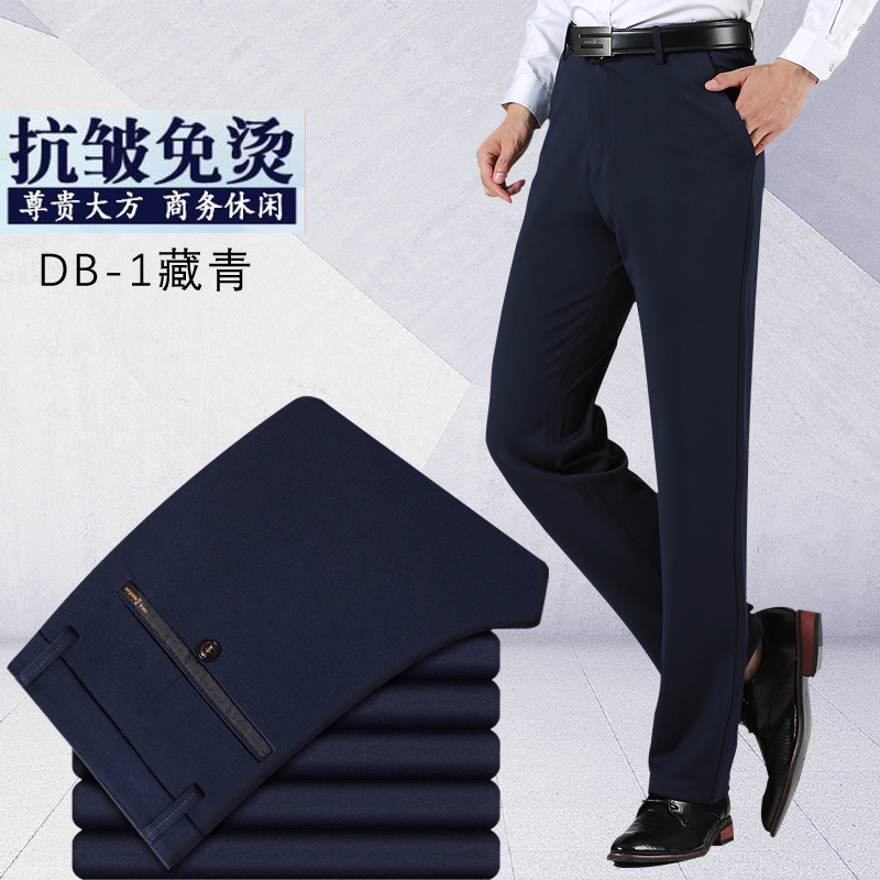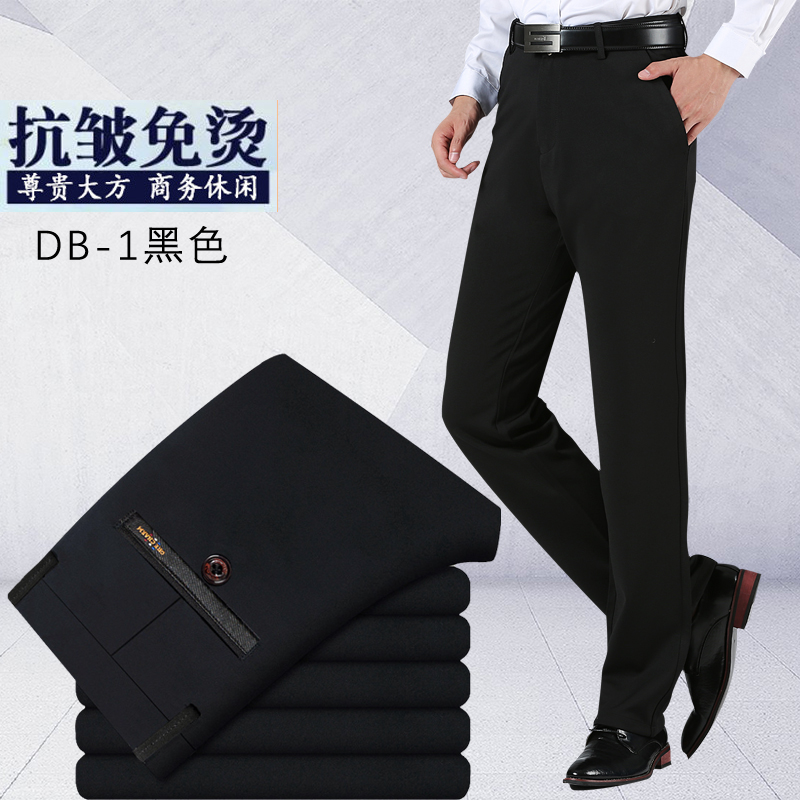 Summer men's casual pants loose straight cylinder plus fattening overweight men pants High waist Western pants Fat slim slim section long pants black