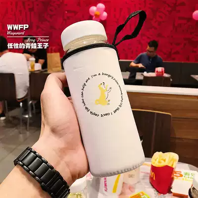 Nordic cute cute super cute animal glass Ha ink cup female high borosilicate transparent cup with lid accompanying cup