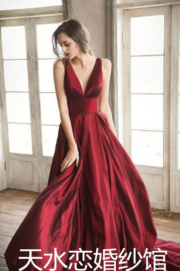 2021 new satin dress temperament bride wedding toast dress burgundy sexy summer long skirt evening dress woman