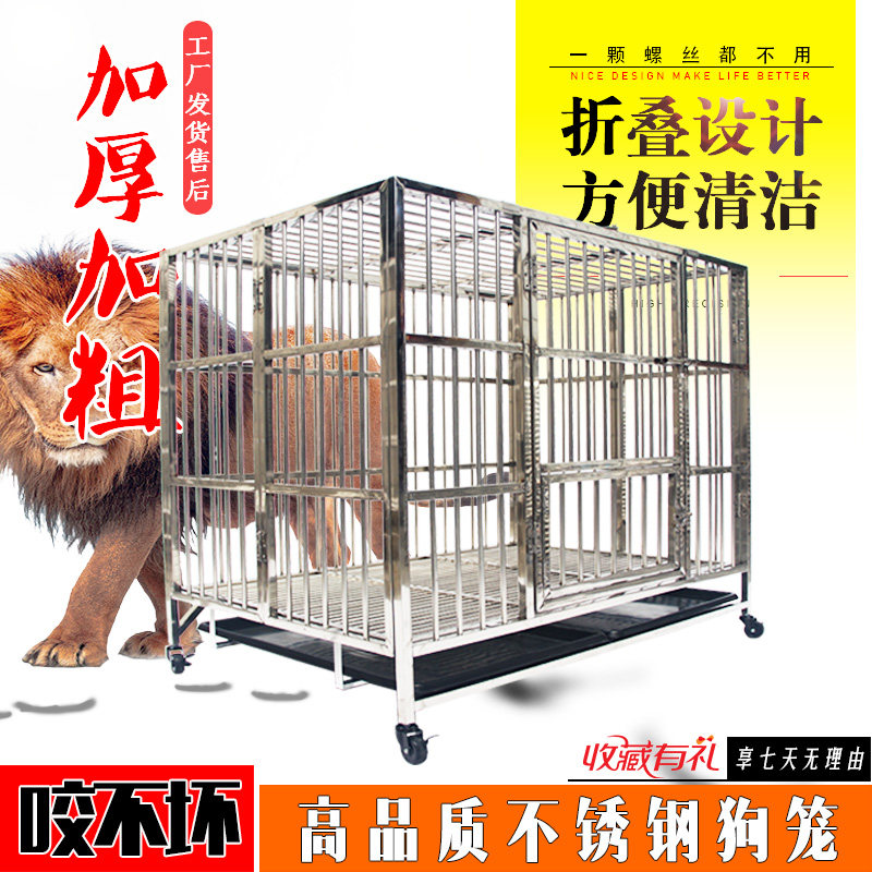 Stainless steel folding dog cage small medium and large dog Labrador Golden Retriever German Shepherd Samoyed Teddy dog cage