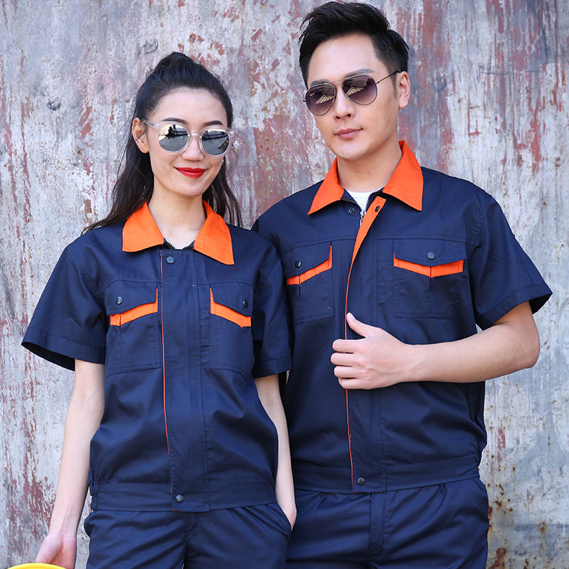Summer work clothes suit men's thin blouses blouses printed word labor conserved construction site tooling short sleeve work clothes steamers custom-made