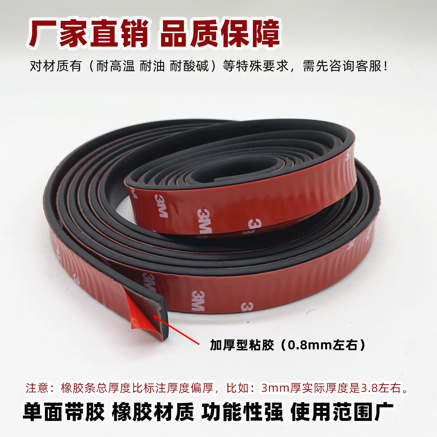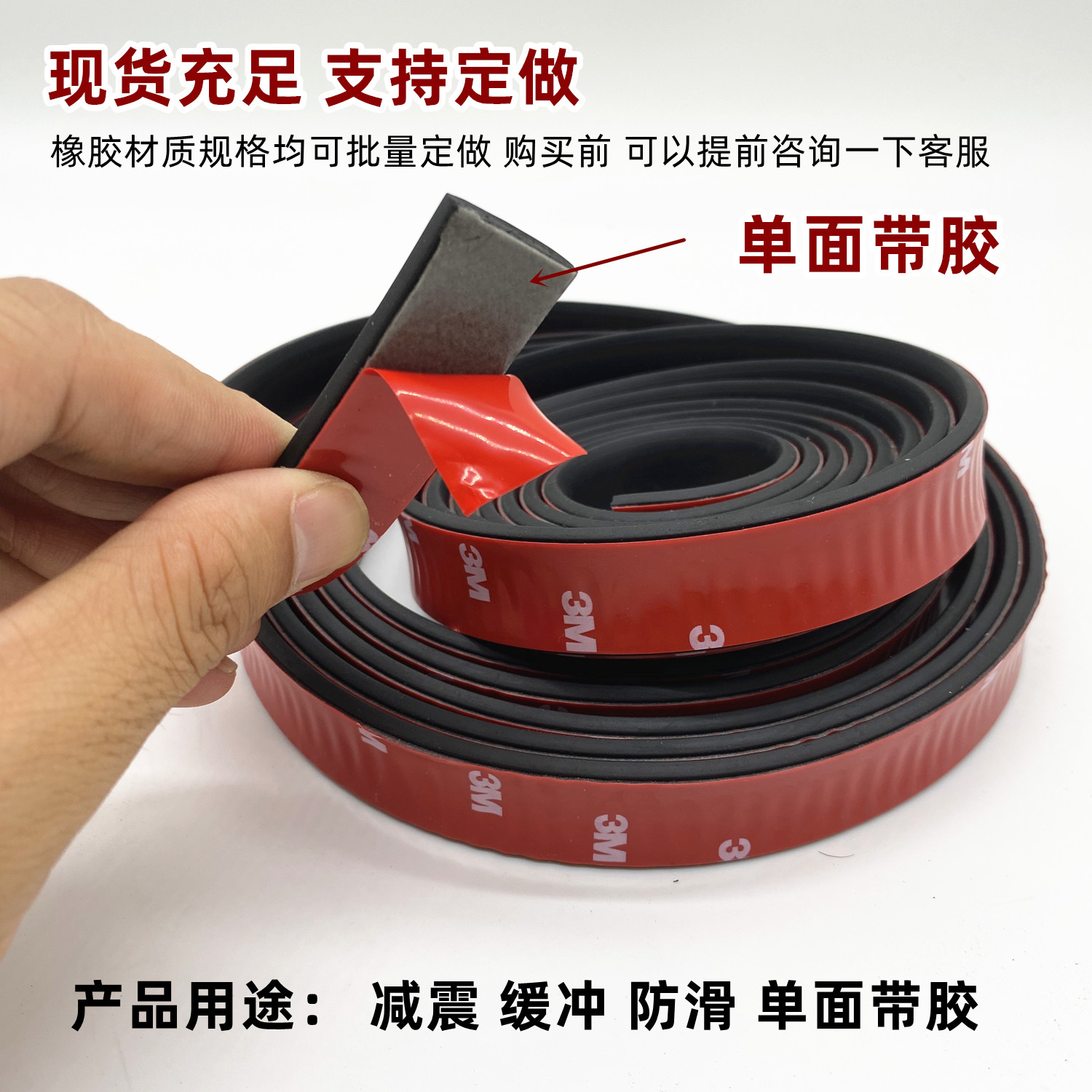 Self-adhesive rubber square strip glass shock-absorbing pad buffer strip non-slip rubber pad back glue rubber strip solid sealing flat strip