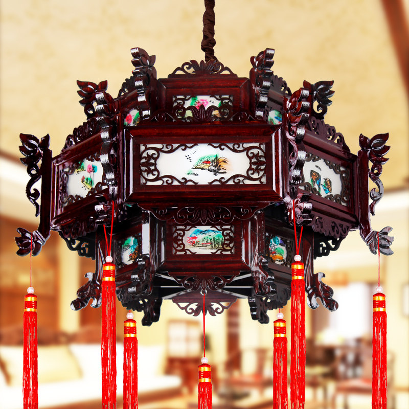 Chinese style retro solid wood lotus lantern corridor gangway balcony antique lantern classical Chinese wind-style lamps