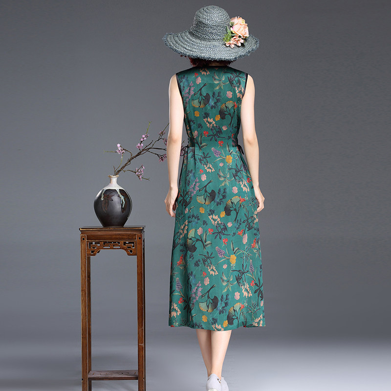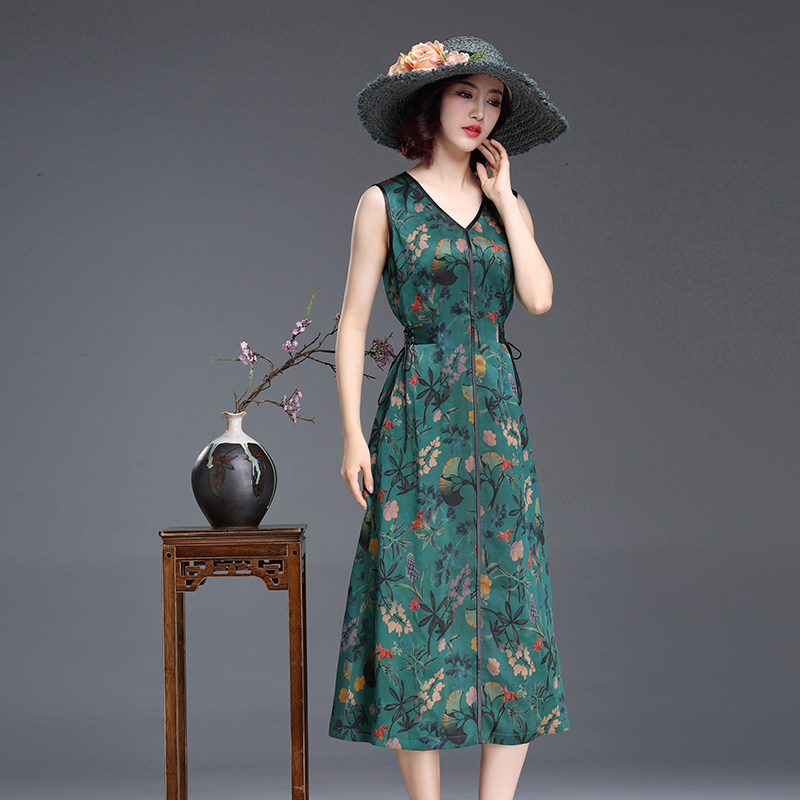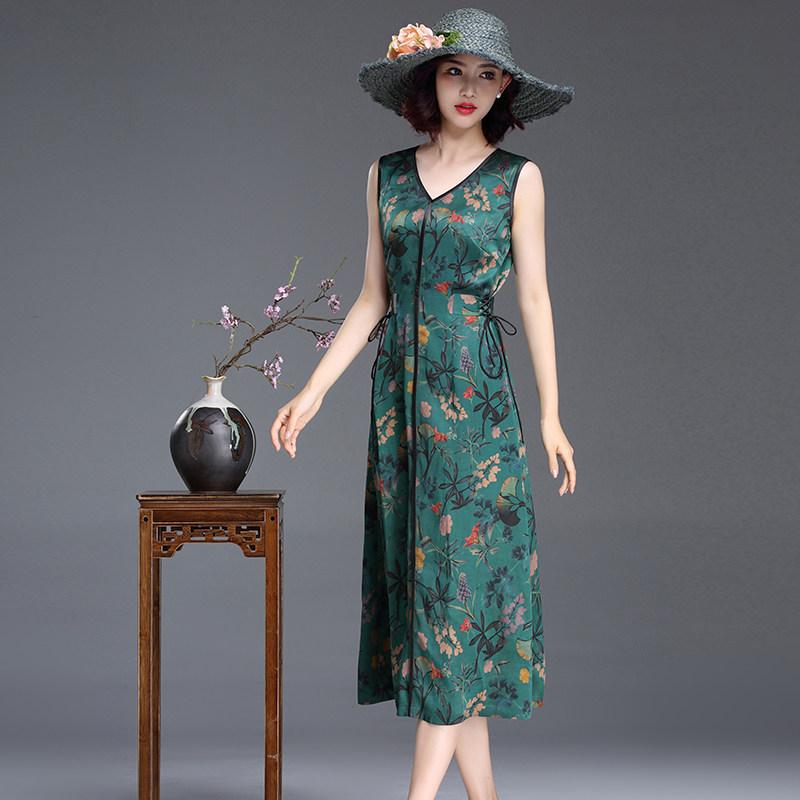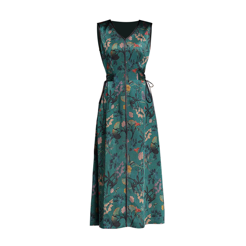 Autumn Water Ballad (Yunsong Yin) Summer New Heavy Silk Xiangyun Dress Women's Drawstring Waist Sleeveless Dress