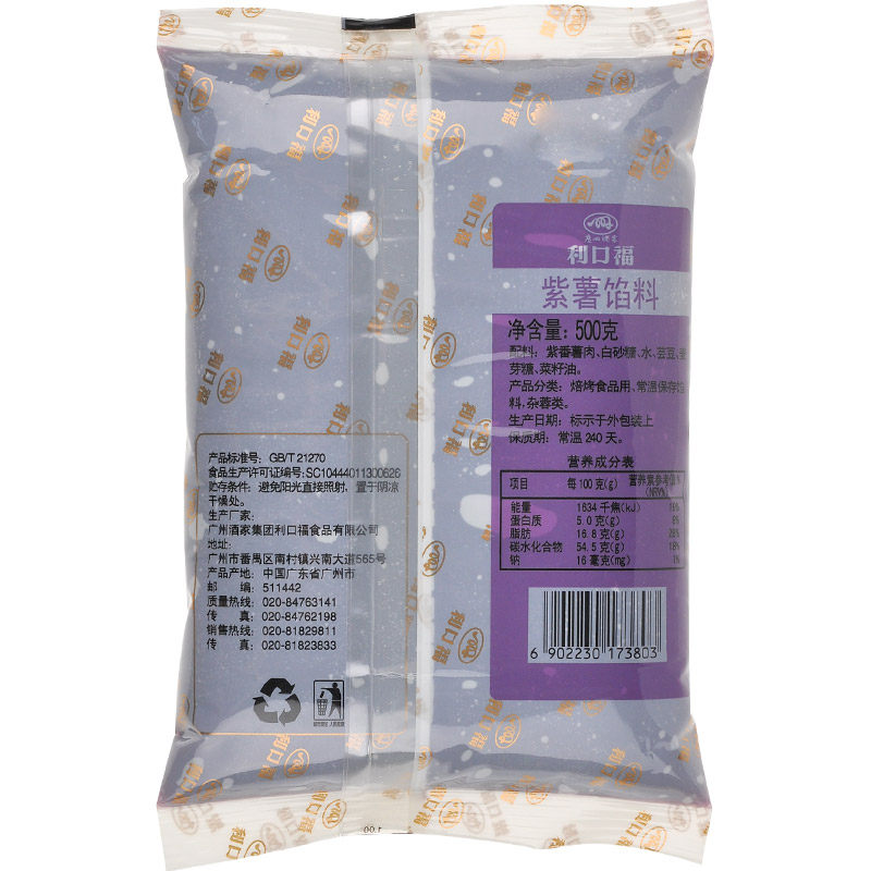 Guangzhou Restaurant Likoufu stuffing purple potato stuffing 500g moon cake stuffing mud baking raw material moon cake pastry stuffing home