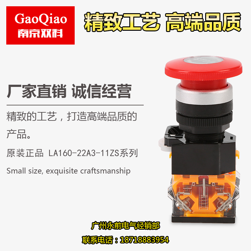 Nanjing Shuangke knob emergency stop mushroom button LA160-22A3-11ZS STOP] emergency switch 22mm