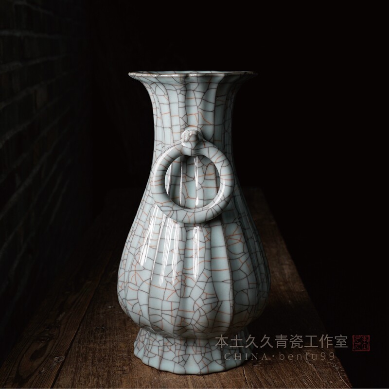 Xu Jianxin Handmade Flower Dragon Quanqing Porcelain Gg Kiln Home Swing Piece of Vase Golden Silk Iron Thread Big cabbage Bottle