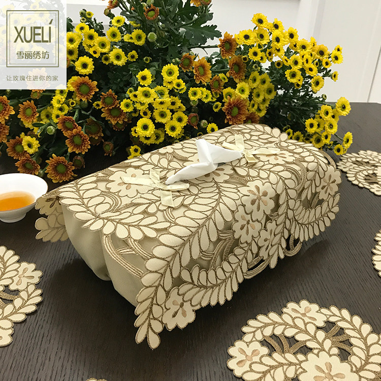 Fashion pastoral fabric European-style Chinese-style American embroidered napkin set paper towel set paper towel box set mountain flowers