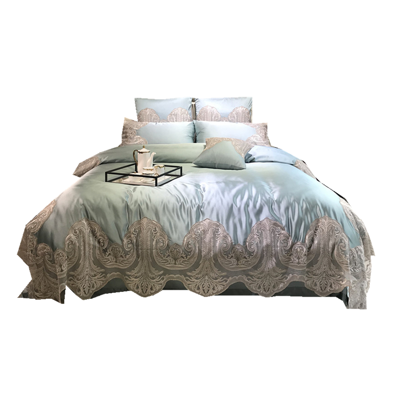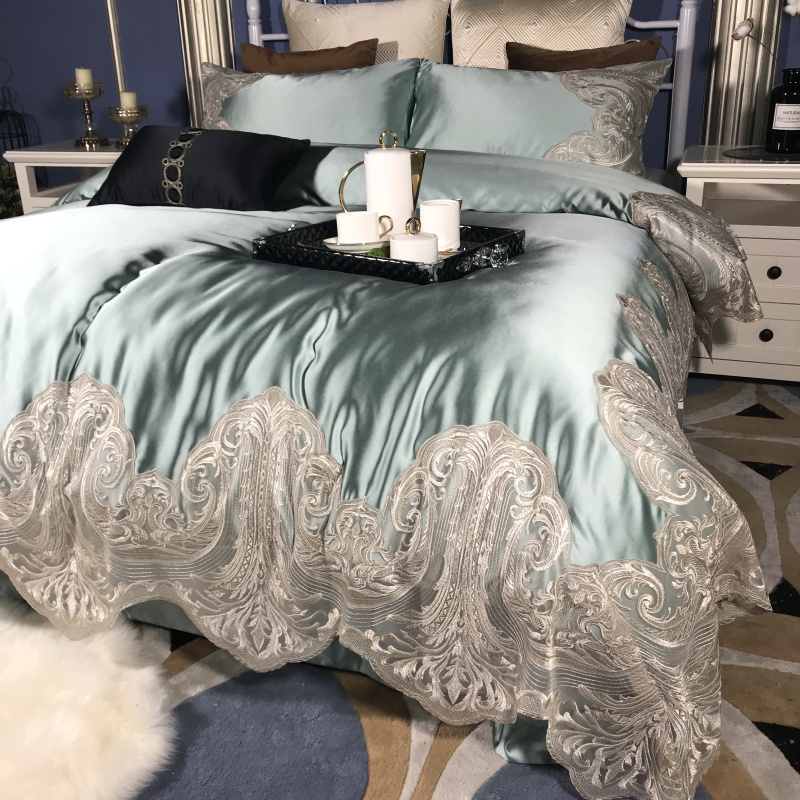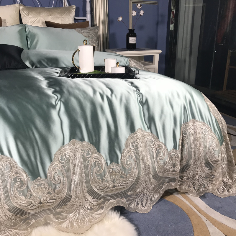 European-style solid color lace edge four-piece set silk quilt cover pure cotton bed sheet model room villa bedding