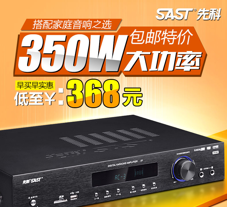 SAST Xianke amplifier fixed-resistance home use 5 1HiFi home theater av audio heavy bass amplifier power