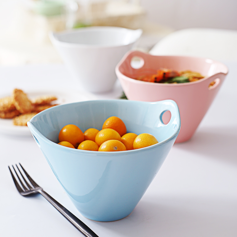 Japanese style hat ramen bowl ceramic creative fruit salad bowl household noodles porcelain bowl student bowl chopsticks tableware set group