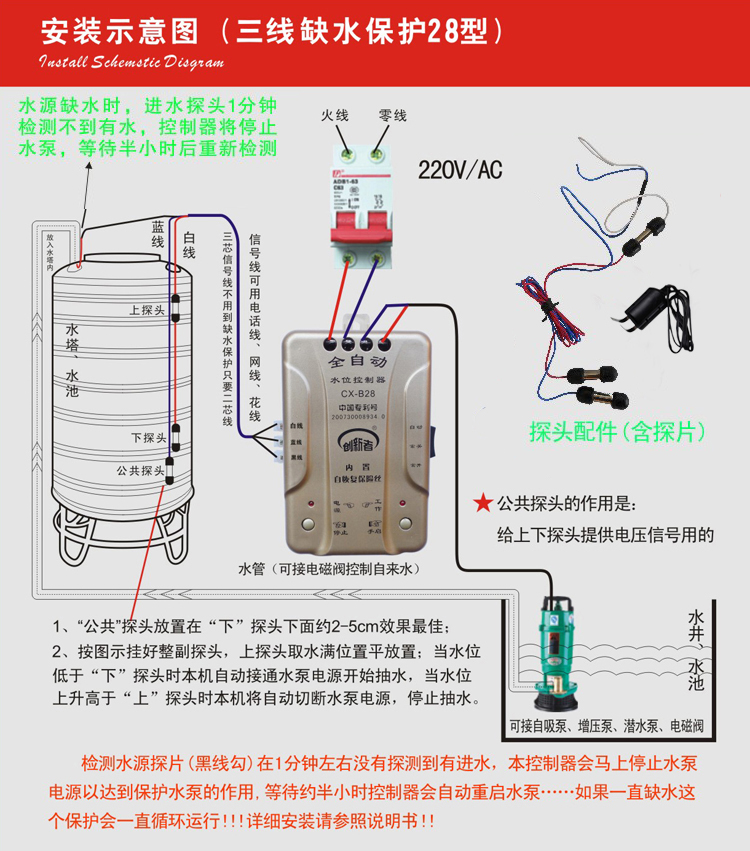 Water level controller fully automatic innovator water tower water tank pumping and drainage pump float switch water shortage protection