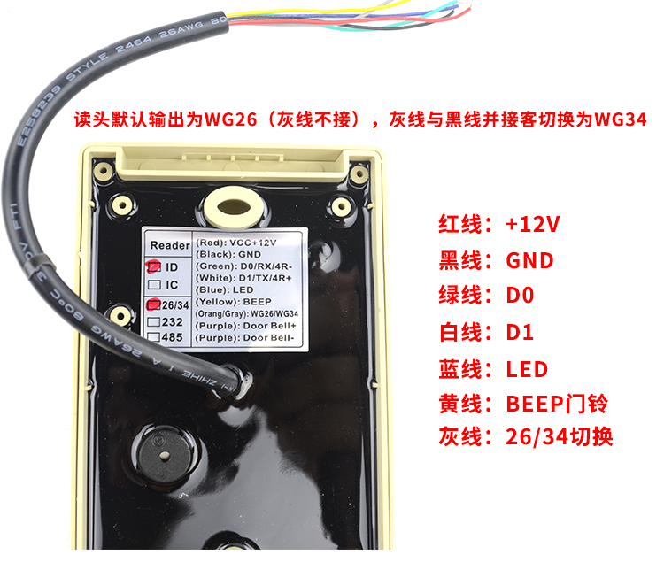 Waterproof and rainproof access control reader ID card Wagen WG26IC card external access control reader wg34 whiteboard reader