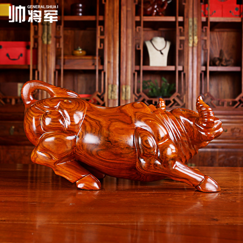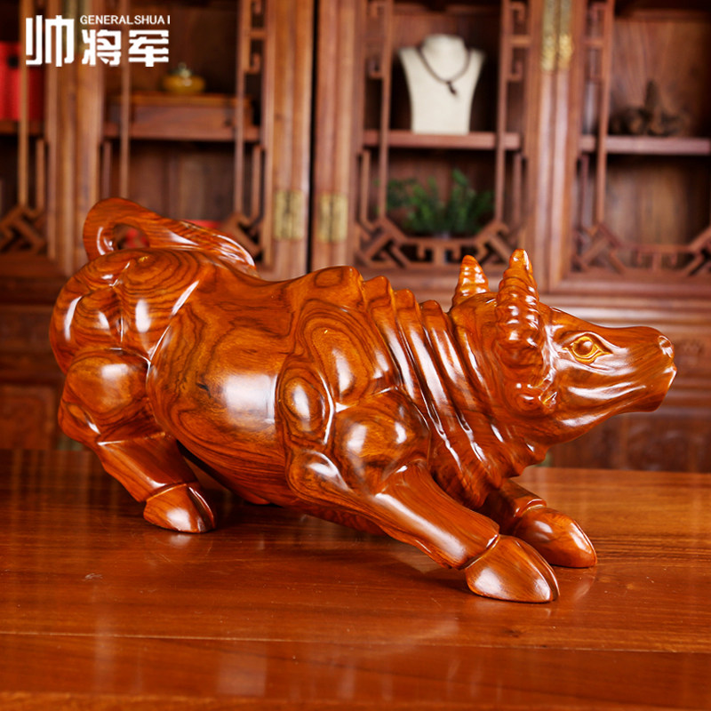 Ebony Pear Wall Street Wood Carving Cow Ornament Solid Wood Craft Gift Ornament Mahogany Carving Office Craft Gift Ornament
