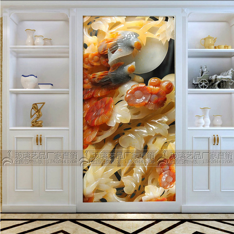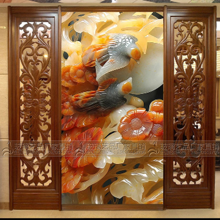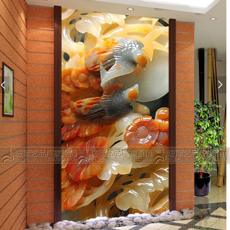 3D three-dimensional carving carving art glass partition Living room dining room Shoe cabinet screen Entrance aisle entrance background wall