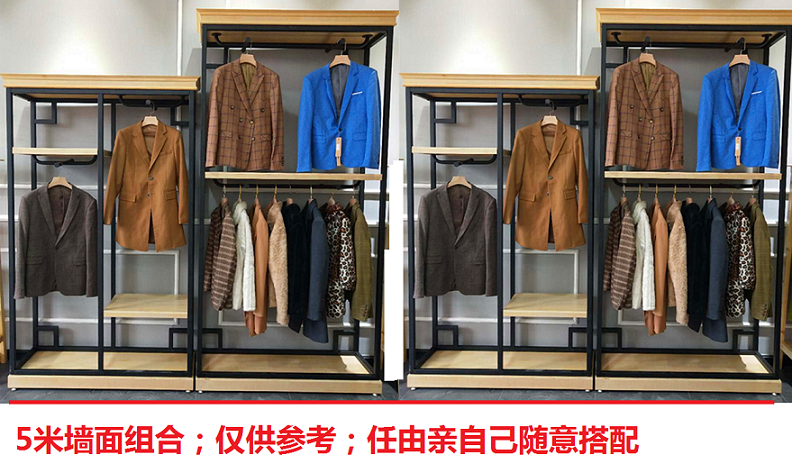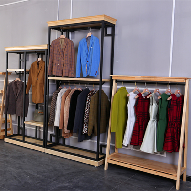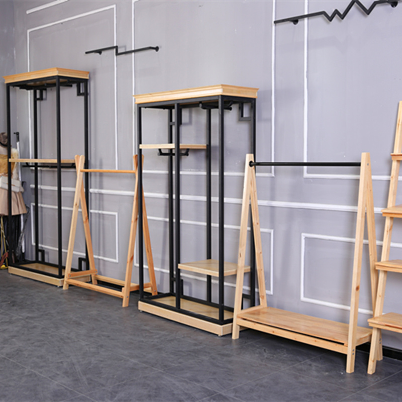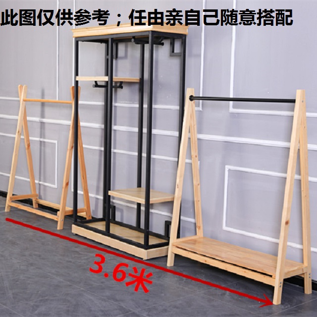 Men's and women's clothing store display stand children's clothing floor stand log color iron art against the wall display shelf combination shoe rack hanger