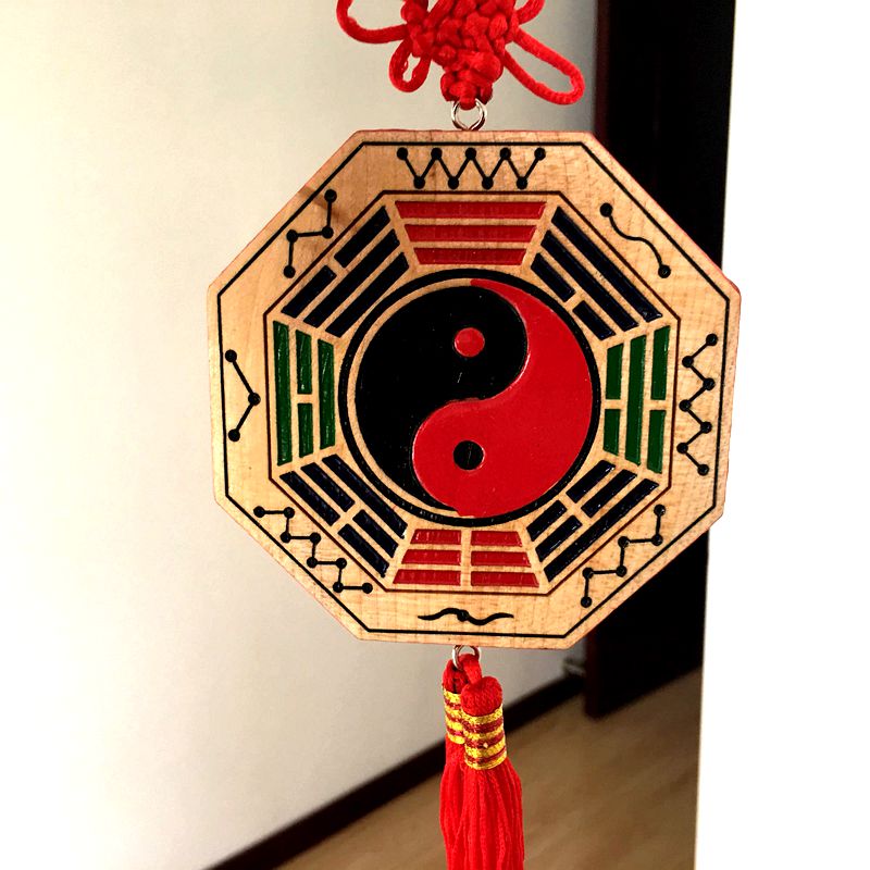 Peach wood painted 8 divination mirror pendant Tai Chi Seven Stars Home Residence Ornaments