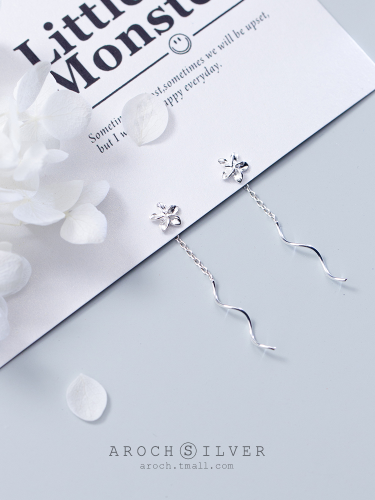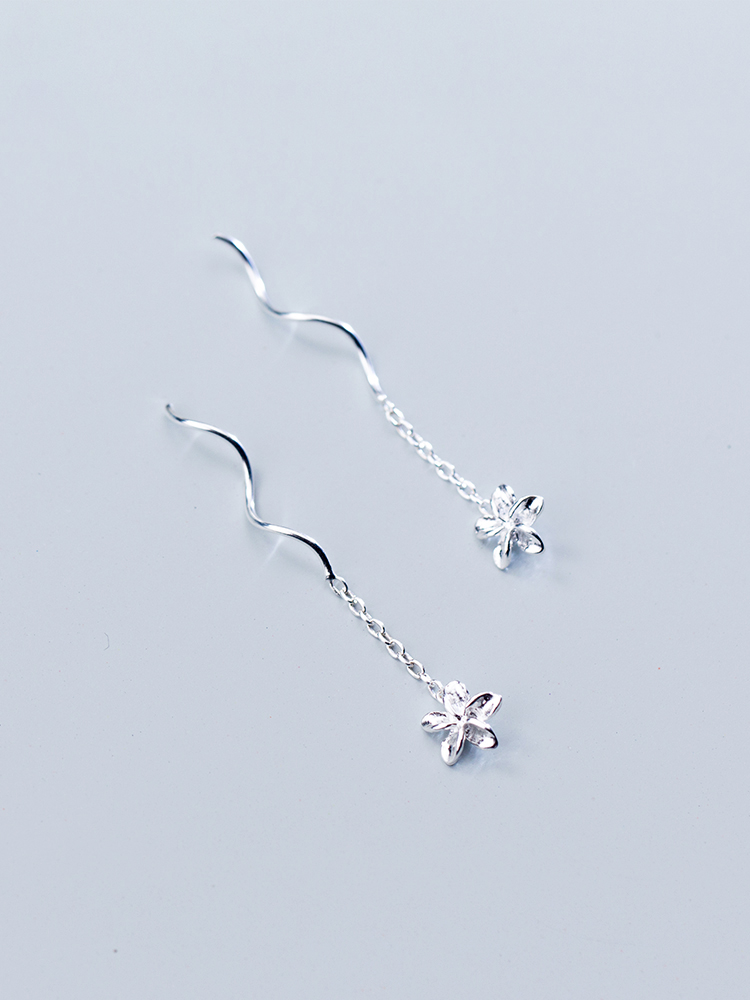 Love Loach S925 silver flower ear necklace female Han version 5-petal flower sweet and beautiful wave art chicken egg floral earthen