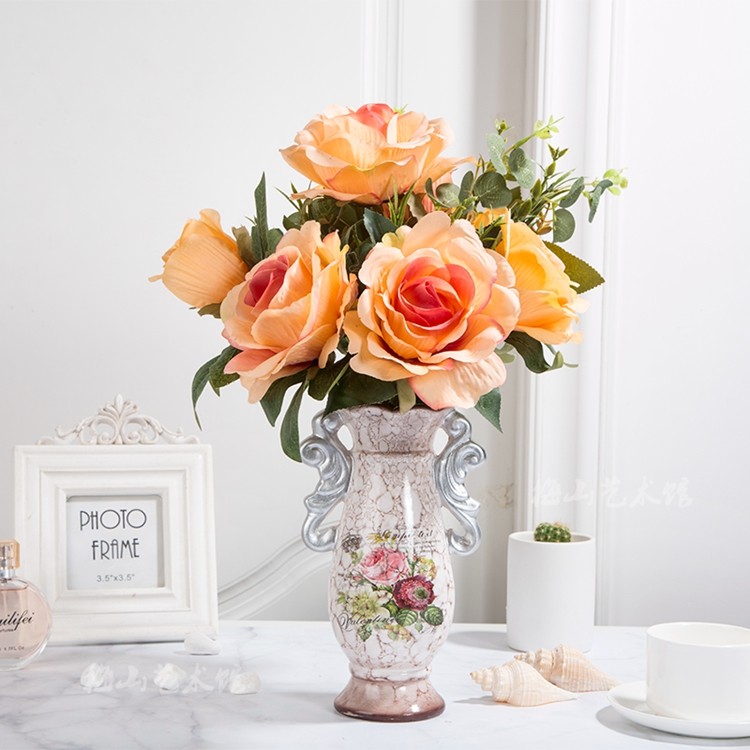 Simulation set rose bouquet living room flower arrangement fake flower home decoration silk flower wedding flower promotion