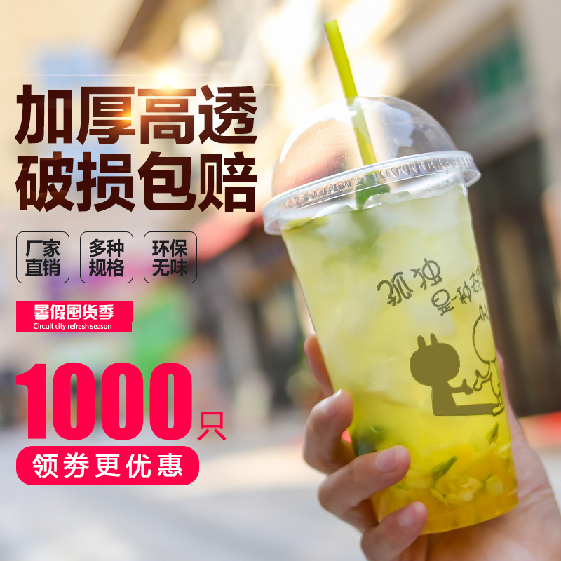 95 calibre disposable milk tea cup commercial with lid juice Beverage cup thickened soy milk plastic cup 1000 only