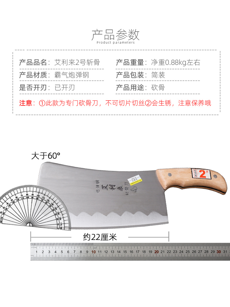 Eilly 2 decapitated knife barrable shell steel chopped pig large bone chopping bone machete machete knife large kitchen knife resistant to chop and durability
