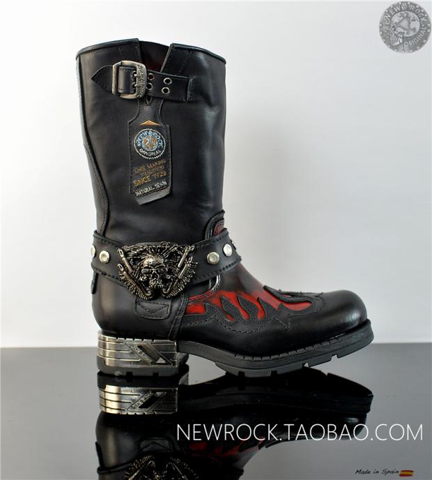 New NEWROCK Flame Metal Skull Harley Motorcycle Bullet Boots Riding Boots
