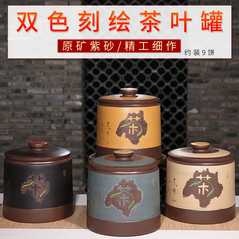 New listing mid-name Home 9 Pie Clothing Purple Sand Tea Pot Pu'er Seven Sub Cake Jar Loose Tea 4 Catty Tea Leaf Jars-Taobao