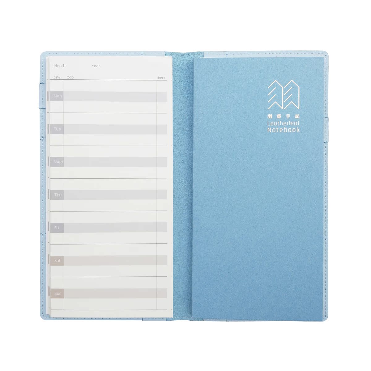 TWELVE MOONS COWHIDE FEATHER LEAF NOTEBOOK MULTI-function HAND LEDGER LOOSE-leaf BOOK-LIGHT BLUE