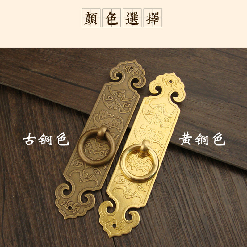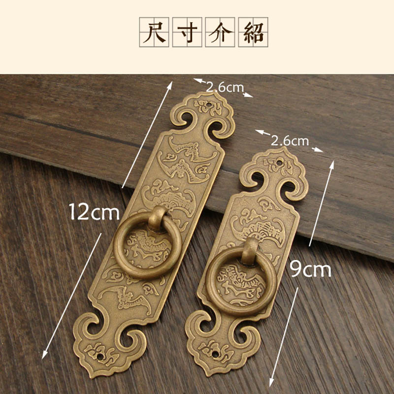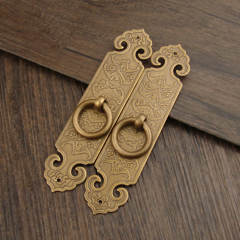 Chinese imitation antique pure copper straight strip handle wardrobe drawers whole closet cabinet door copper handle single hole bat Xiangyun pull ring handle