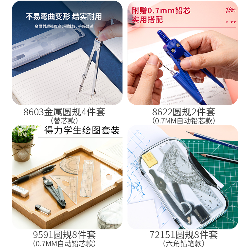 Able 8603 Stationery Cute Compasses Drawing Compasses Four Sets Student Compasses Standard Stainless Steel Metal